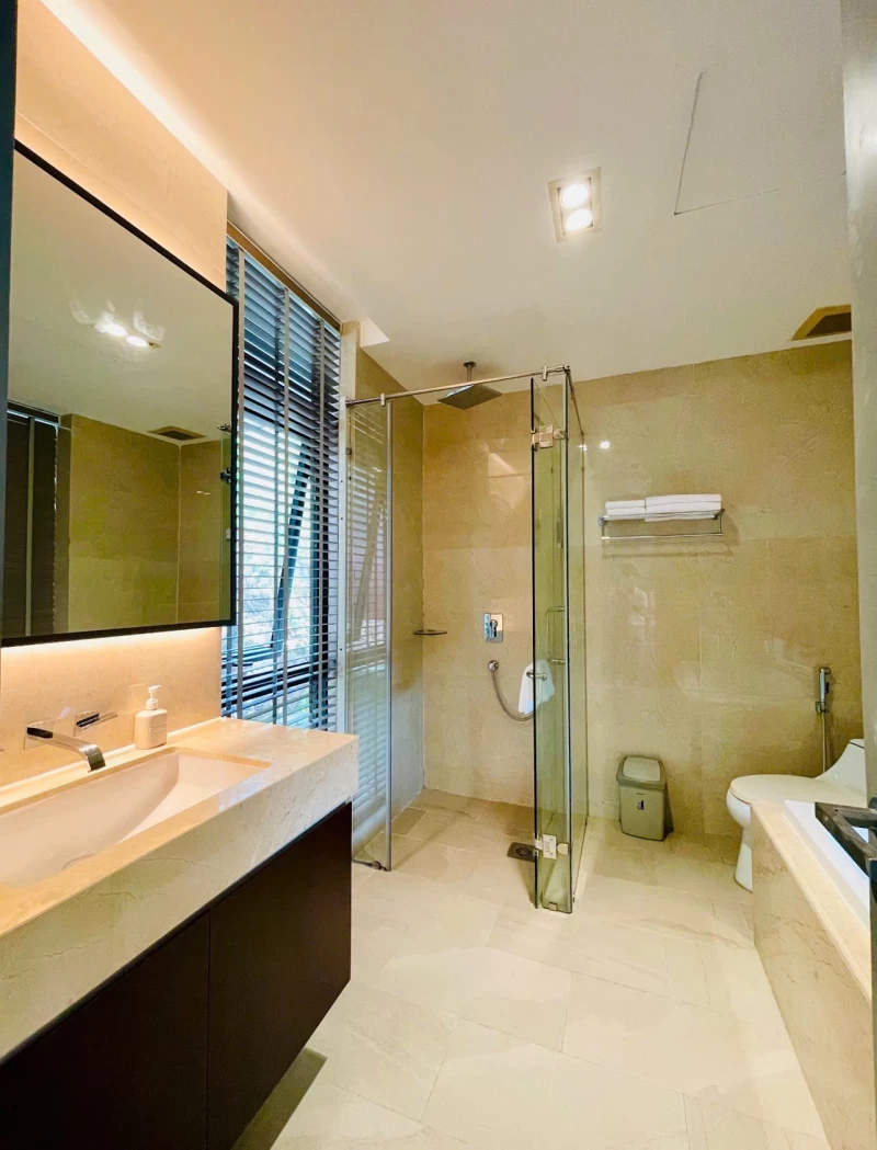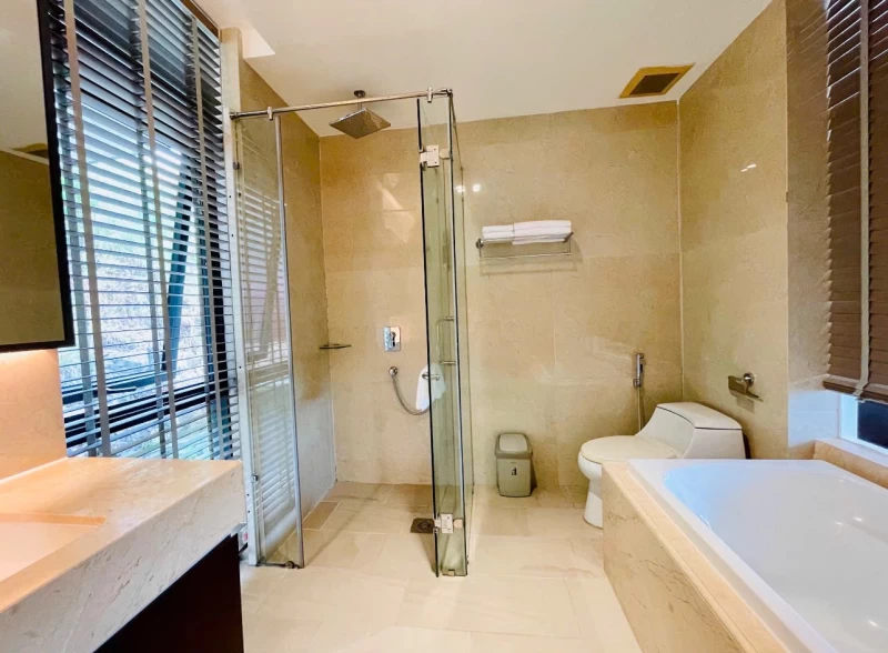 * Có bể bơi riêng vô cực, bàn ghế uống trà, sân vườn bbq ngoài trời, dàn karaoke, phòng xông hơi, máy giặt...