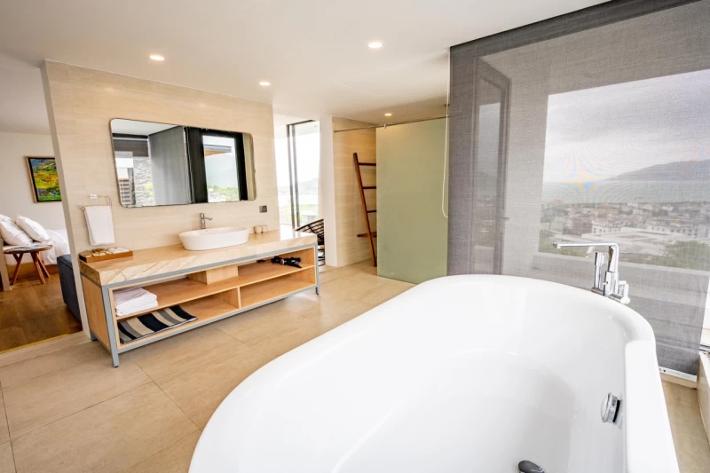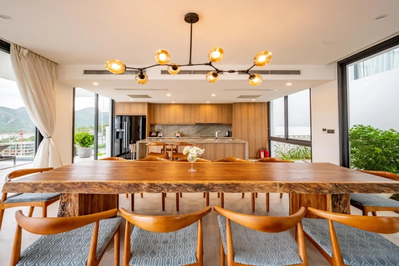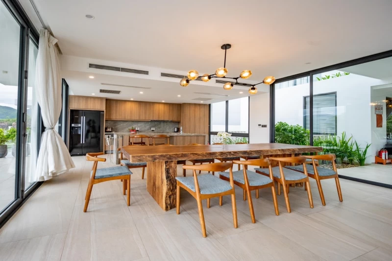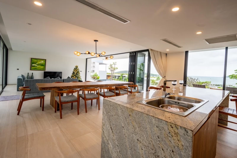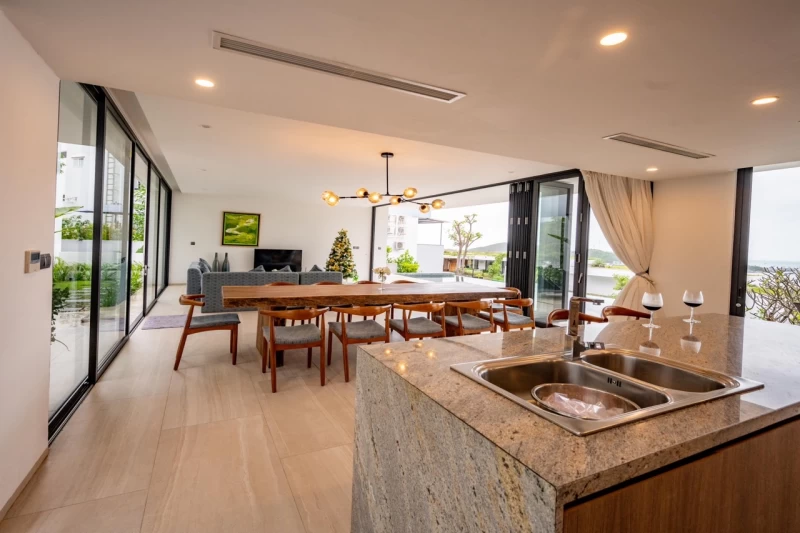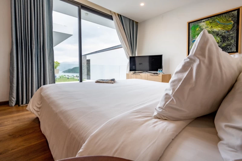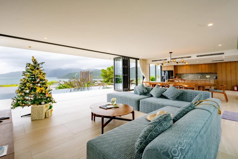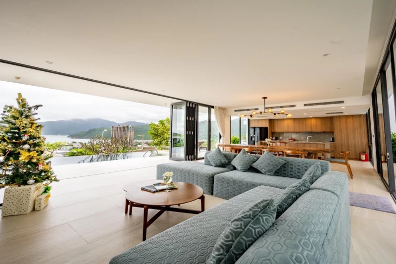 Anh Nguyen's villa area in Nha Trang, also known as Nha Trang Ocean Front Villas, is located in a prime location with its back facing Canh Long mountain and facing Nha Trang bay. Located in a prime location, where the lush green mountains and forests meet the vast sea. This is a high-end villa area, modern and luxurious design with beautiful panoramic sea views. Each villa is meticulously built, harmoniously combining nature and modern amenities, providing residents with an ideal and comfortable living space. The villa also has diverse amenities such as swimming pool, tennis court, children's play area and BBQ area, promising to be a great vacation place for family and friends.