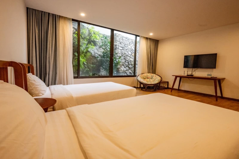 * Đầy đủ tiện ích, wifi, điều hoà, nóng lạnh, tivi.