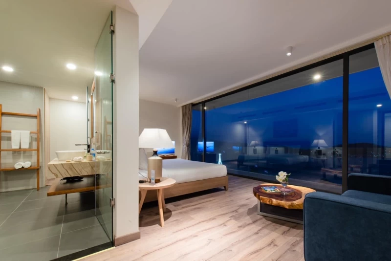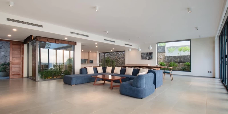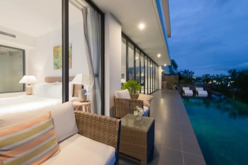 Anh Nguyen's villa area in Nha Trang, also known as Nha Trang Ocean Front Villas, is located in a prime location with its back facing Canh Long mountain and facing Nha Trang bay. Located in a prime location, where the lush green mountains and forests meet the vast sea. This is a high-end villa area, modern and luxurious design with beautiful panoramic sea views. Each villa is meticulously built, harmoniously combining nature and modern amenities, providing residents with an ideal and comfortable living space. The villa also has diverse amenities such as swimming pool, tennis court, children's play area and BBQ area, promising to be a great vacation place for family and friends.