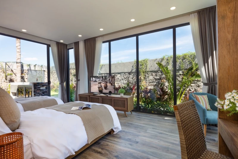 ,tổng cộng 5 phòng ngủ tiêu chuẩn 10 khách.